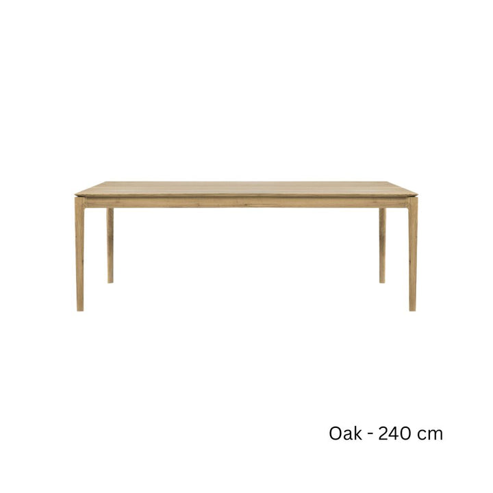 - Just like its matching chair, Ethnicraft's Bok solid oak dining table has become one of their hallmark designs. The combination of solid construction and airy shape create a remarkable design. This timeless piece will be enjoyed for years to come. Choose from a variety of wood stains and sizes, to make this table your own.
