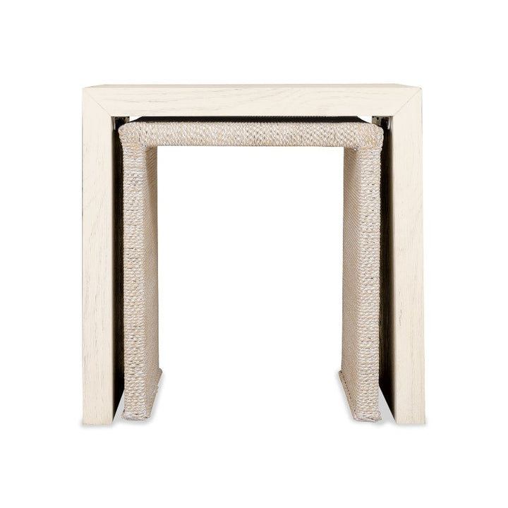 - The Accord Nesting Table set combines an elegant white wash natural grain veneer with a delicate woven design, creating a distinctive addition to any room. These versatile nesting side tables offer both style and functionality, allowing you to arrange them together or separately to suit your space. Crafted to enhance your décor with subtle texture and timeless appeal.