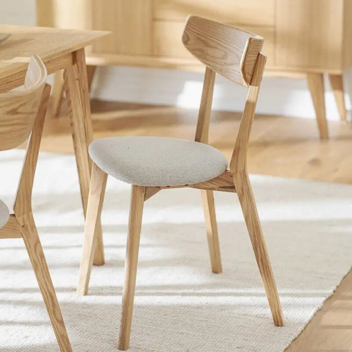 - The Ally Dining Chair combines timeless Scandinavian design with exceptional craftsmanship. Available in solid oak with a durable grey-beige fabric seat or in solid brown lacquered oak paired with a resilient beige fabric seat, it offers both elegance and comfort. Crafted from FSC® certified wood, this chair ensures sustainability and responsible forestry practices, making it a refined and ethical choice for your dining space.