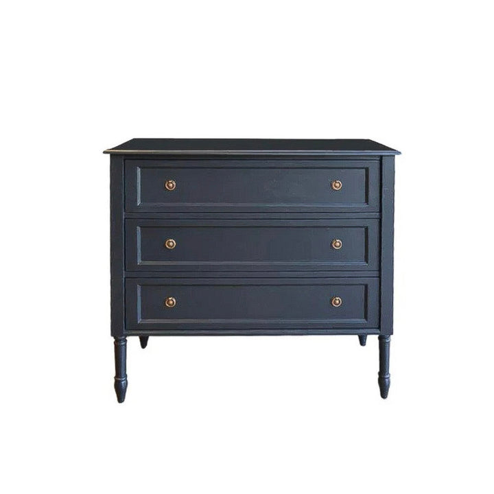 - Indulge in luxury with the Anita 3-Drawer Chest, meticulously handcrafted from mindy ash wood. Its classical design exudes elegance, accented by intricate bronze handles. Whether in your bedroom or other living spaces, this black ink chest is a versatile addition to your home.