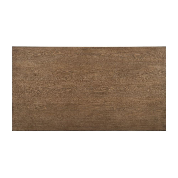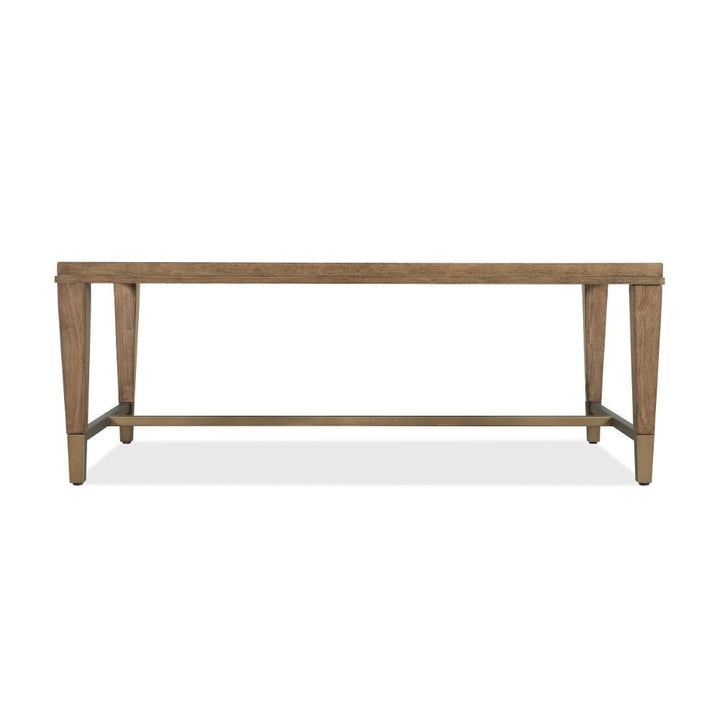 - The Broad Rectangle Coffee Table features a rich brown hardwood top that beautifully showcases a natural grain veneer finish. Supported by elegant brass-detailed legs, this piece combines timeless craftsmanship with a touch of refined luxury. Its sophisticated design makes it a striking centerpiece for any living space.