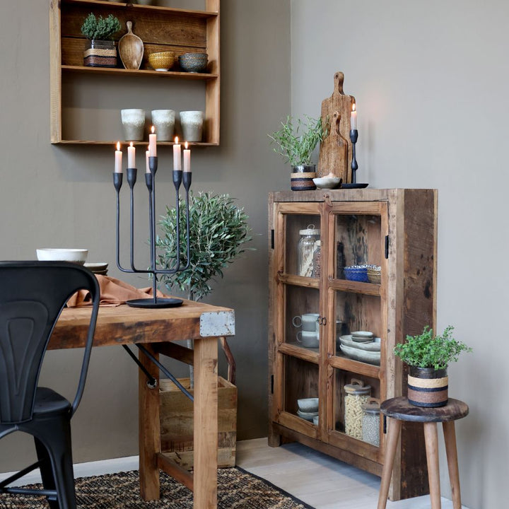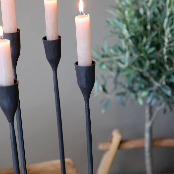 - Elevate your space with the Château Noir 6-Arm Candlestick, an antique black masterpiece that blends timeless elegance with functional design. Crafted to hold six candles, this striking piece creates a warm, inviting ambiance while serving as a refined centerpiece. Its sophisticated finish and classic silhouette make it perfect for adding a touch of vintage charm to any setting.