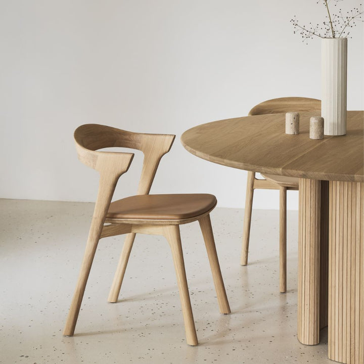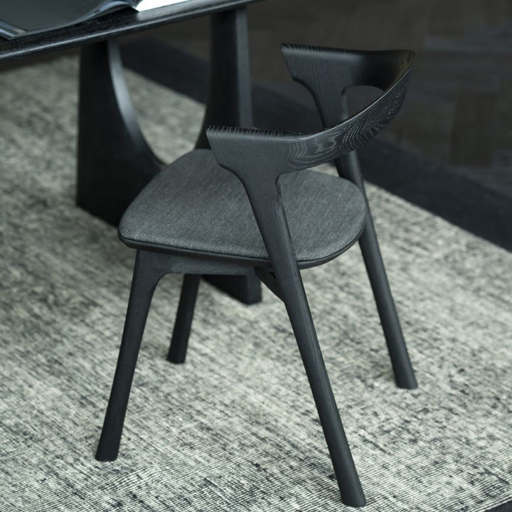 - Over the years, the Bok dining chair has become one of Ethnicraft's most recognizable designs. Designer Alain van Havre combines sculptural elegance and contemporary crafting into a graceful and airy form. This version features a cushion for extra comfort. Choose from Oak, Black Oak, or Oak Brown, each with varying cushioned seats.
