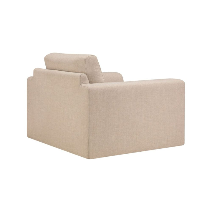 Leche coloured upholstery over high density foam.
