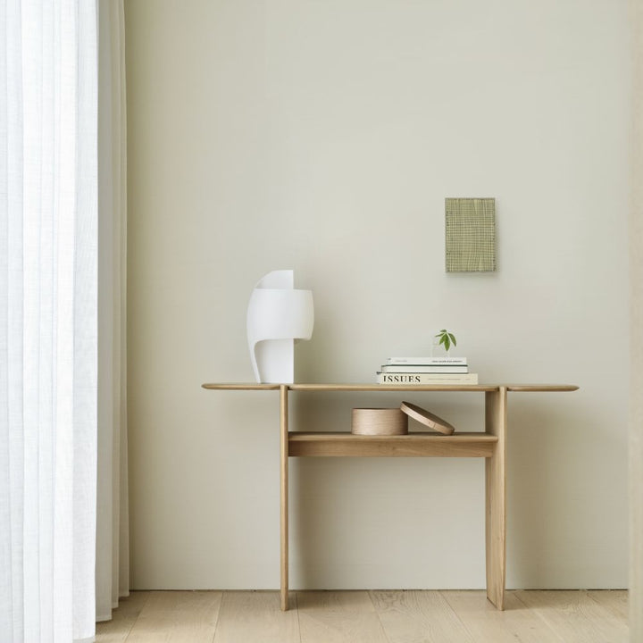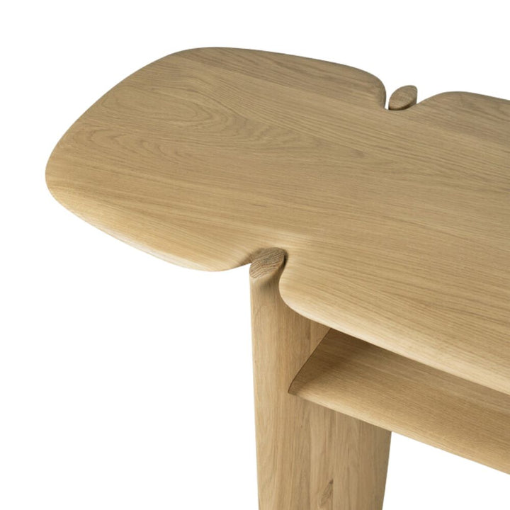 - Crafted with an eye for detail and a respect for nature, the PI Console from Ethnicraft exudes sophistication and exclusivity. Hand-finished with an elegant polished imperfect finish, this console is an exquisite display of strength, curves and lines, seamlessly blending elegant form with natural functionality. Add a touch of luxury to your home decor with this timeless piece.