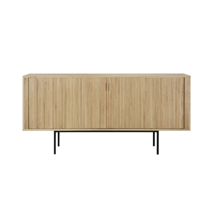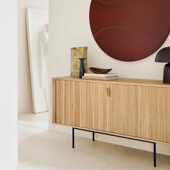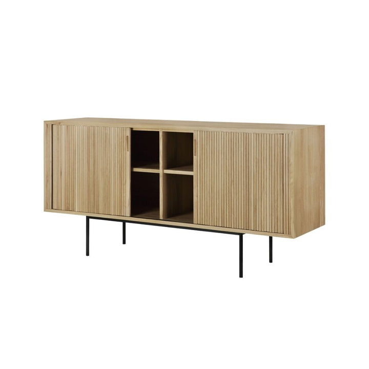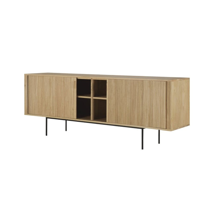 - This Ethnicraft sideboard provides the perfect balance of elegance and functionality. Designed by Alain van Havre, the eye-catching design is beautifully coupled with functional storage, featuring sliding doors, adjustable shelving and seamlessly integrated handles. It's stacked wood-stick design gives a sophisticated and unique look, making it perfect for both residential and commercial spaces.