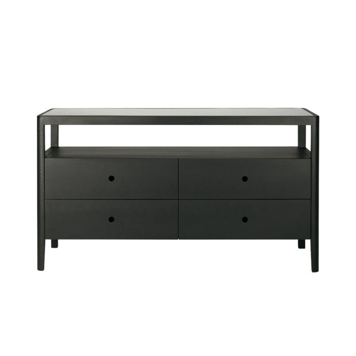 - Unleash your adventurous spirit with the Ethnicraft Spindle Dresser. Inspired by the spinning wheel, its tapered legs and rounded edges bring a touch of sensuality to any space. Perfect for the bedroom or as a chic storage option in commercial areas. Elevate your style game with this beautiful piece!