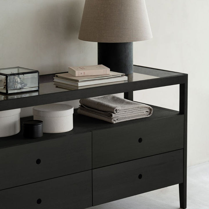 Spindle Chest of Drawers - Unleash your adventurous spirit with the Ethnicraft Spindle Dresser. Inspired by the spinning wheel, its tapered legs and rounded edges bring a touch of sensuality to any space. Perfect for the bedroom or as a chic storage option in commercial areas. Elevate your style game...
