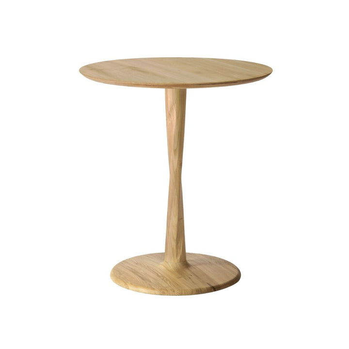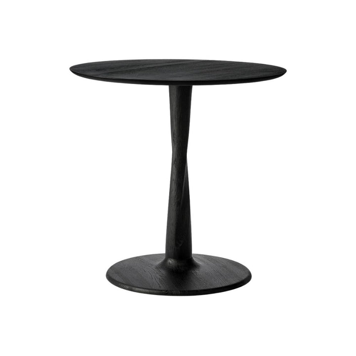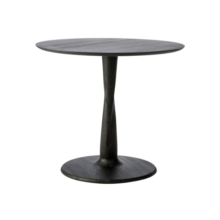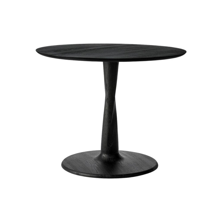 Designed by Alan van Havre, this Ethnicraft dining table is airy with subtle complexities. The Torsion incorporates advanced woodworking techniques to create a light solid oak table top with a torsaded base of sculptural elegance. This table comes in a round or square shape with the choice of natural oak wood or black oak. Choose from a 70cm, 90cm or 127cm diameter.