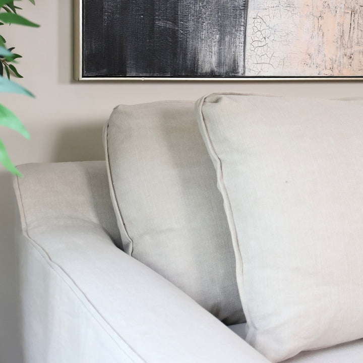 Furninova Grande 3 Seater Double Day Loose Cover Sofa - Ex-display - Experience the Furninova Grande Sofa, where spacious design meets refined comfort. Its soft, thick seat cushion and elevated backrest provide exceptional support, while the deeper seat invites you to relax fully. With its loose covers, this sofa adapts...