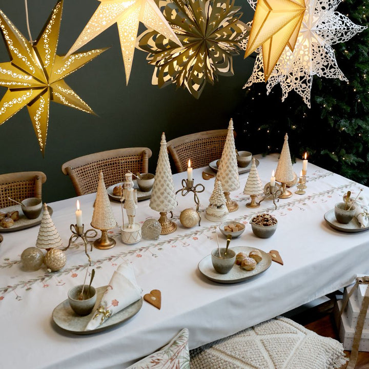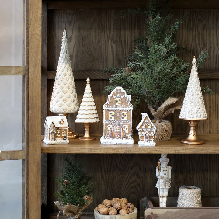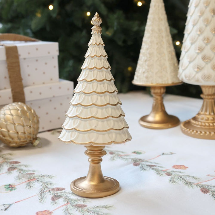 Golden Cream Christmas Tree - S - Elevate your holiday decor with this antique cream Christmas tree ornament, featuring a refined golden base. Its subtle cream hue and elegant gold detail add a timeless sophistication, making it a perfect accent for any festive setting. Ideal for those seeking understated luxury...