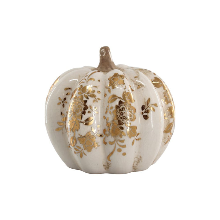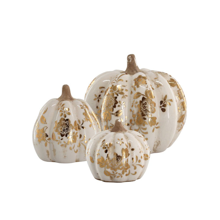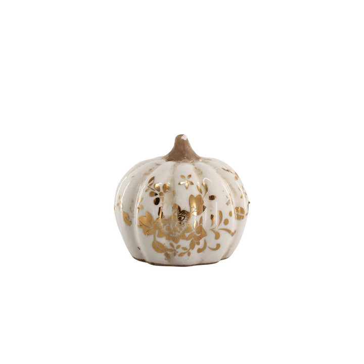 - Elevate your seasonal decor with the Golden Glow Pumpkin, a refined ceramic piece featuring elegant golden detailing. Available in three sizes, it offers versatile styling options—display a harmonious set or showcase individual pumpkins for a subtle yet sophisticated touch. Perfect for adding warmth and timeless charm to any room.