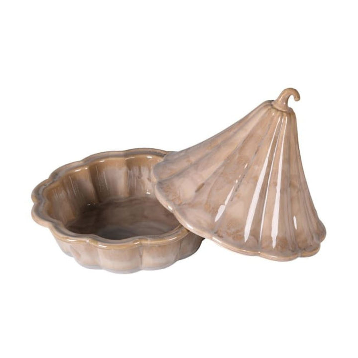 Gourd Tagine - The Gourd Tagine is a practical beige dish designed with a pumpkin-inspired shape, complete with a matching lid. Its unique design adds a rustic touch to your kitchen while serving as a functional cookware piece for everyday use. Key Features: Dimensions: H: 26 Dia: 27 cm. Dishwasher...