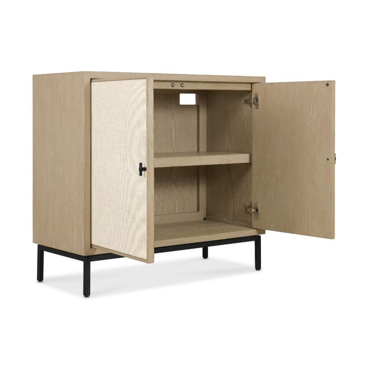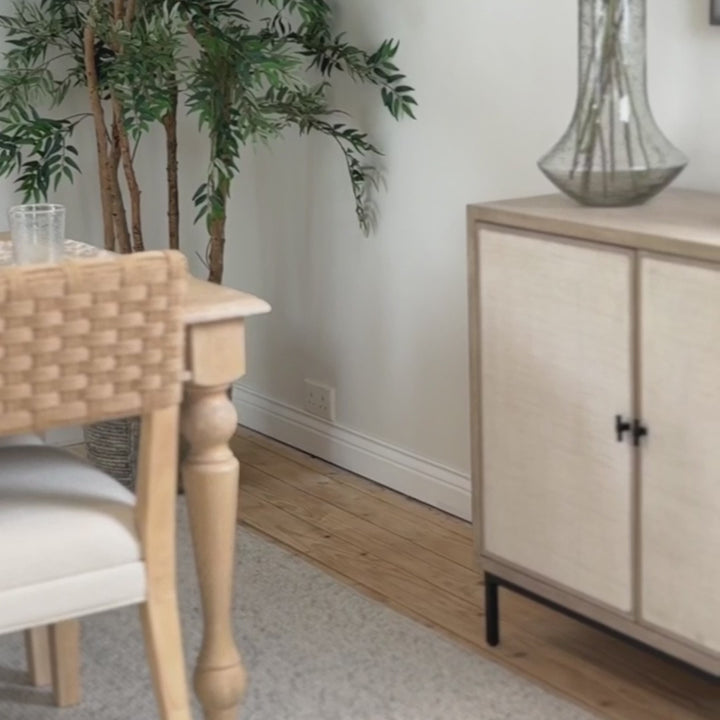 - The Hush 2 Door Sideboard combines rich hardwood with a natural grain veneer finish and textured doors for a refined look. Inside, an internal shelf provides practical storage, while sleek black legs offer sturdy support and a modern touch. This elegant piece seamlessly blends stylish design with everyday functionality, perfect for enhancing any living or dining space.