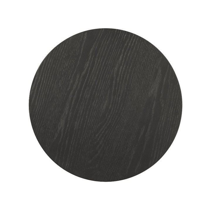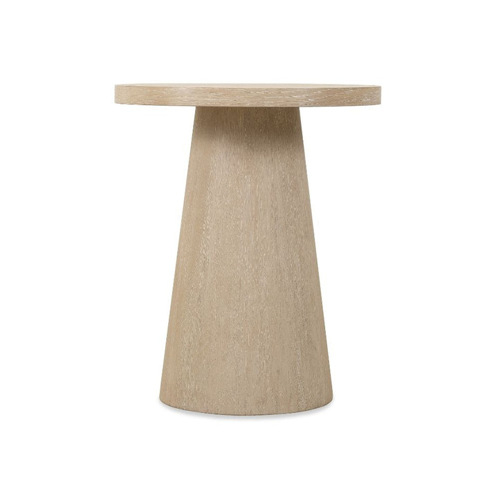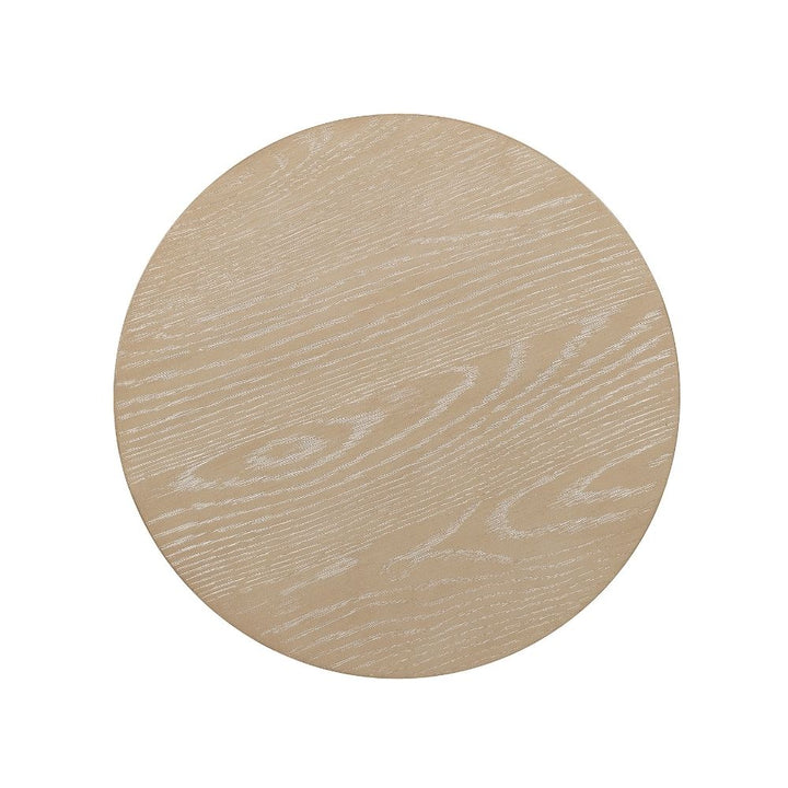 - The Hush Round Side Table is crafted from hardwood with a natural grain veneer finish, available in natural or dark brown. Its sleek, modern design brings warmth and timeless elegance to any living space.