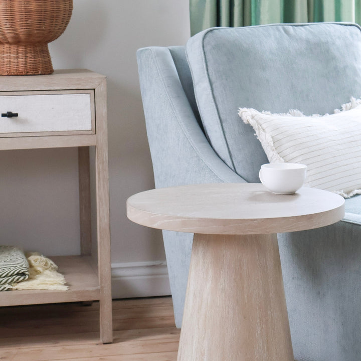 Wood Round Side Table - The Hush Round Side Table is crafted from hardwood with a natural grain veneer finish, available in natural or dark brown. Its sleek, modern design brings warmth and timeless elegance to any living space. Part of our exclusive Arc by Pod range – where warm...