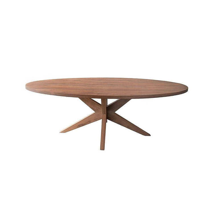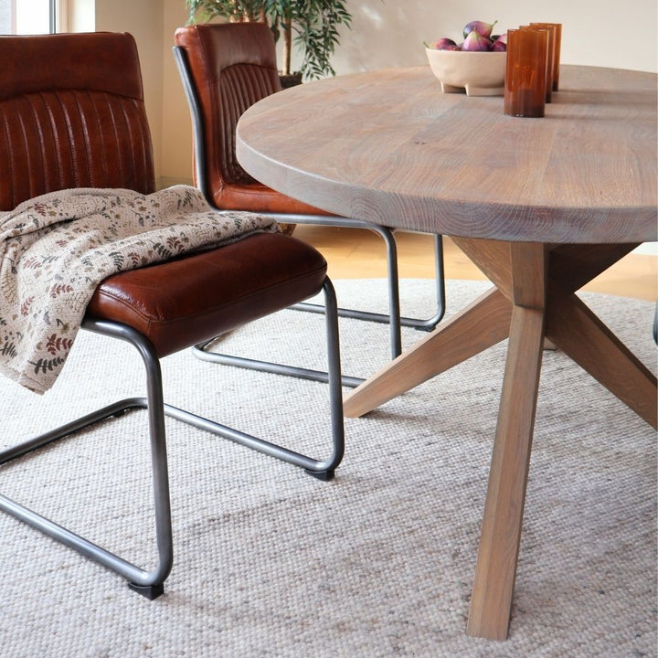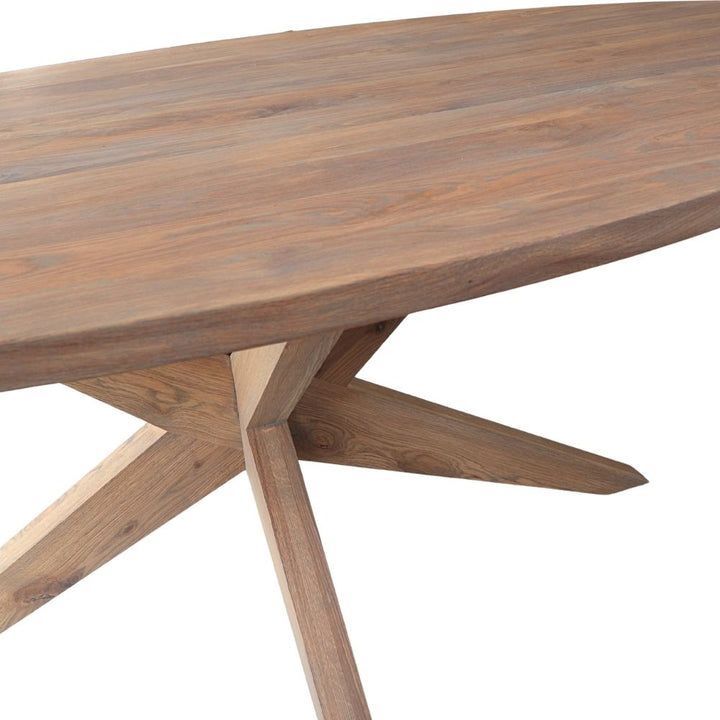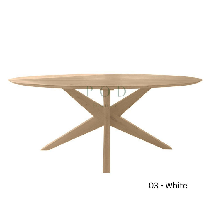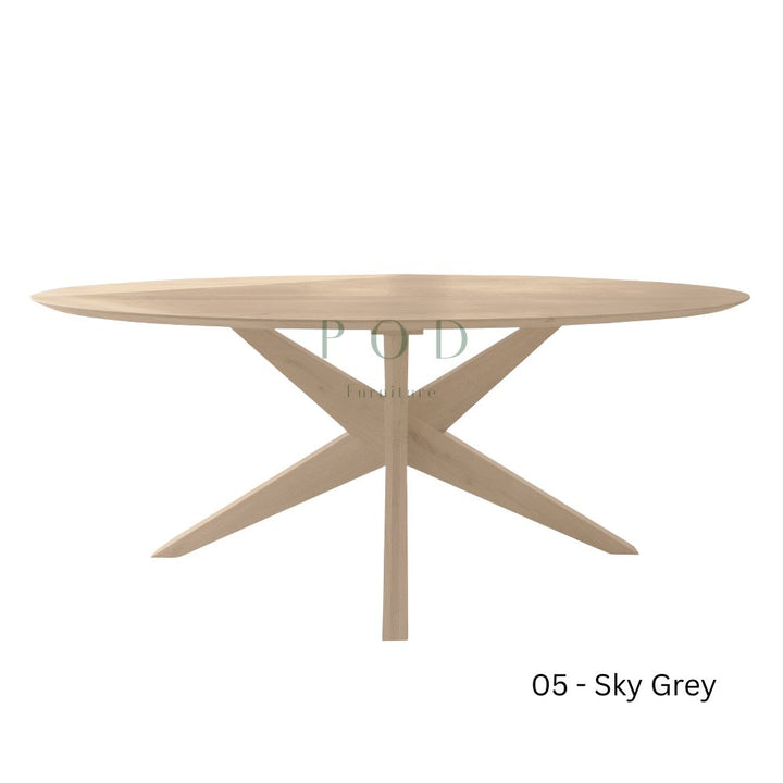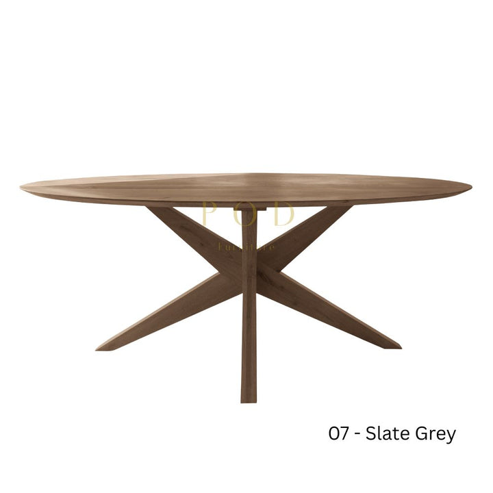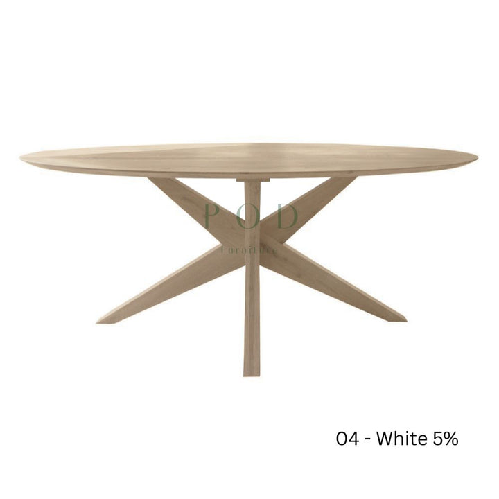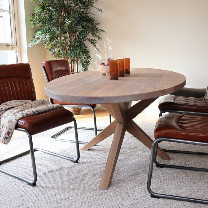 - Crafted from 100% solid European oak, the Jessica Oval Dining Table showcases bespoke woodworking perfection. Each piece uniquely features natural timber knots and cracks that are filled for a smooth finish or left untouched to emphasize its organic character. The elegant oval square edge design offers a refined silhouette, blending classic craftsmanship with contemporary sophistication.