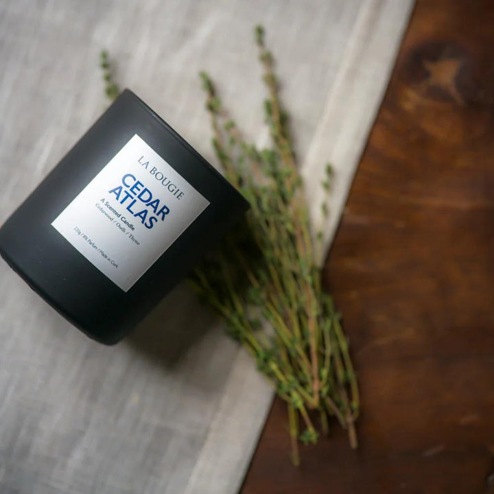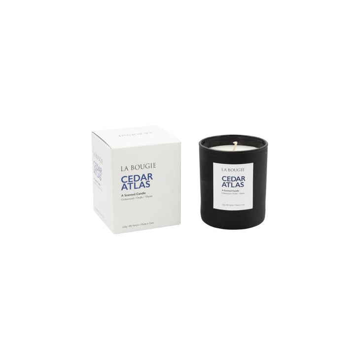 - A modern unisex scent, the Cedar Atlas Candle by La Bougie is a bold and balanced fragrance that celebrates shared spaces and shared style. Grounded in rich Atlas cedarwood and elevated with earthy oud and fresh thyme, it’s a scent designed to be worn — or burned — by anyone, anywhere.
