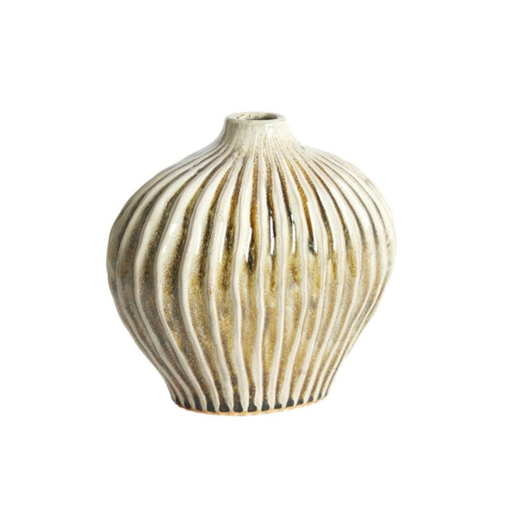 - The Lorina Green Vase, crafted from fine ceramics, features a ribbed design that adds texture and depth to your space. Its green finish offers a natural, calming touch while providing a sturdy base for fresh or dried flowers. Combining practicality and style, this vase fits seamlessly into various interiors without overwhelming your décor.