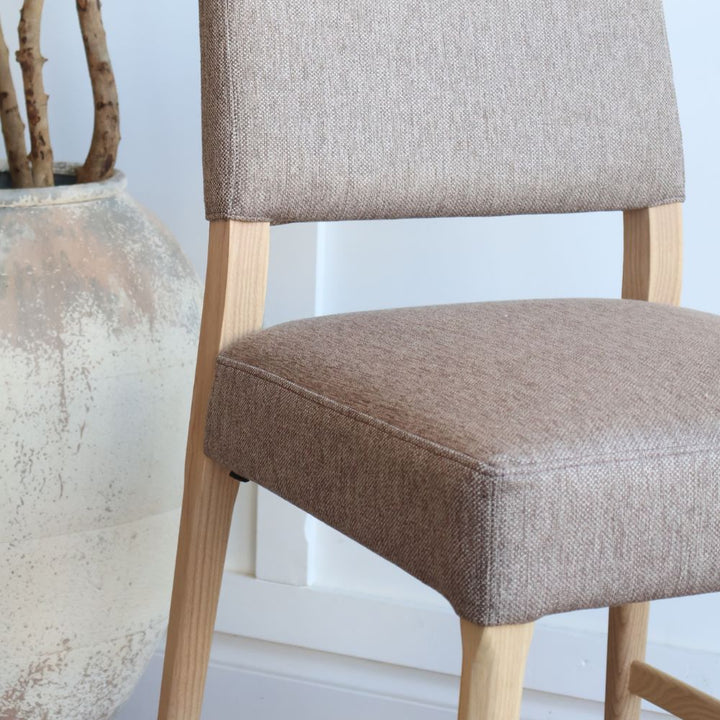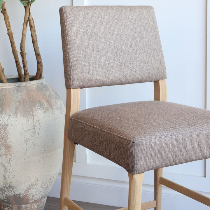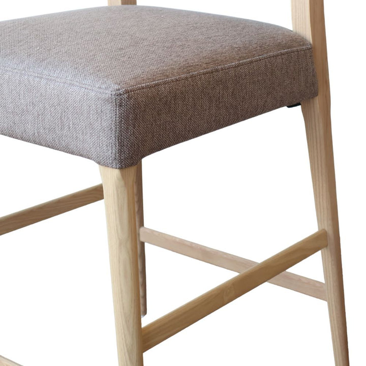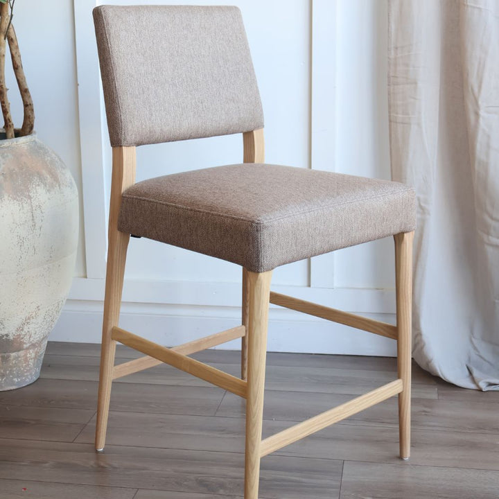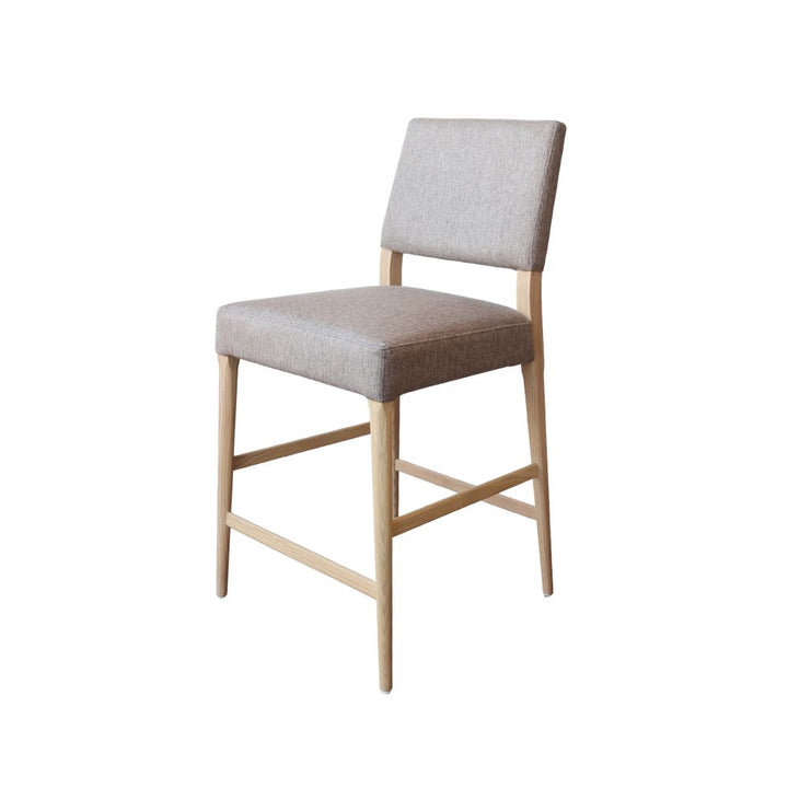 Margaret Bespoke Stool - The Margaret Bespoke Stool offers comfort with its slightly angled padded backrest and taut fabric supported by elastic straps. Its lightweight design makes it easy to move, while the supportive seat and backrest provide reliable seating for everyday use. Key Features: Different Wood finishes available. Fabric...
