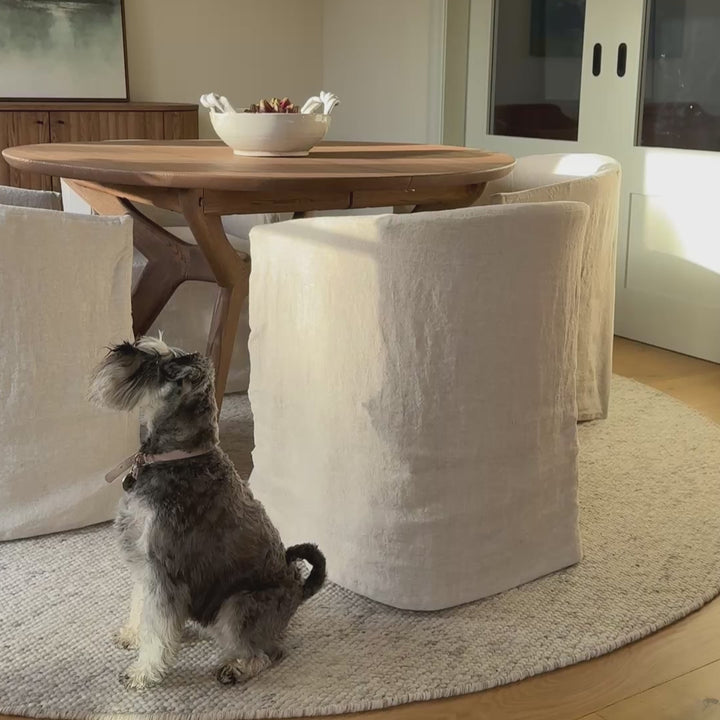 - Introducing the Margot Dining Chair, crafted from luxurious and natural linen. With its loose cover and elegant skirt design, this chair exudes sophistication and exclusivity. Elevate your dining experience with this elegant and tasteful addition to your home.