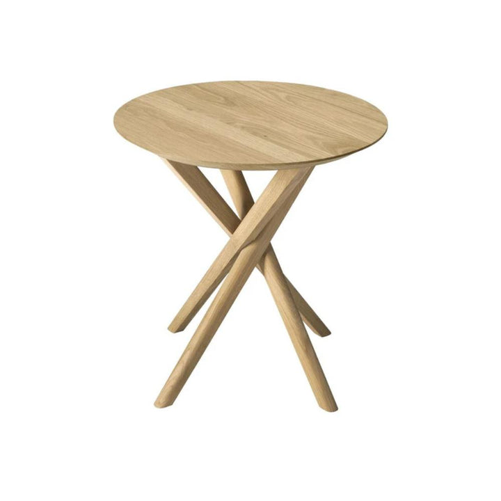 - This Ethnicraft side table, designed by Alain van Havre, is not simply a smaller version of the Mikado dining table. It's a complete reinterpretation of its larger design and a study of balance and symmetry. Made from solid oak wood, this timeless piece would suit any room!