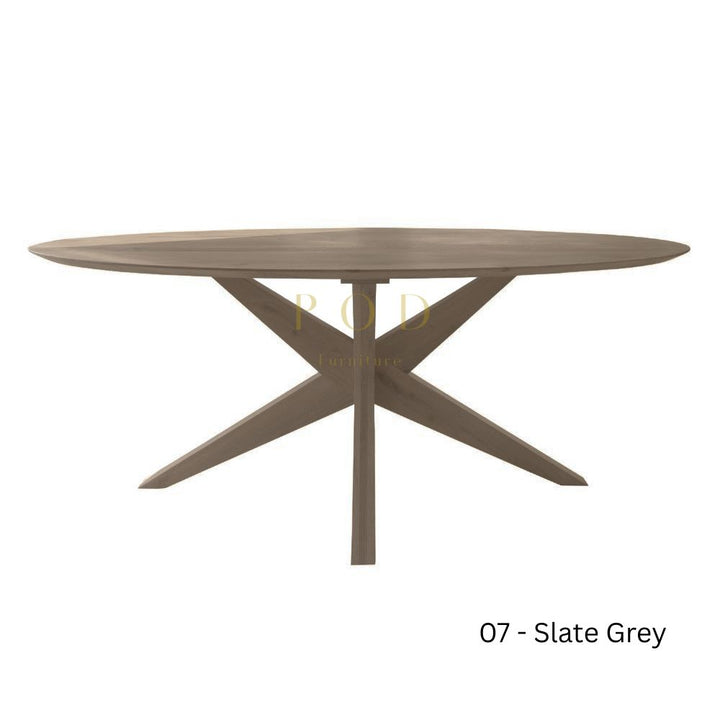 - Indulge in luxury and sophistication with our Mix and Match Dining Table. Crafted from 100% solid European oak wood, each table is uniquely crafted for an exclusive dining experience. Featuring an oval shape and Rex Leg design, this table is the perfect addition to elevate any dining room.