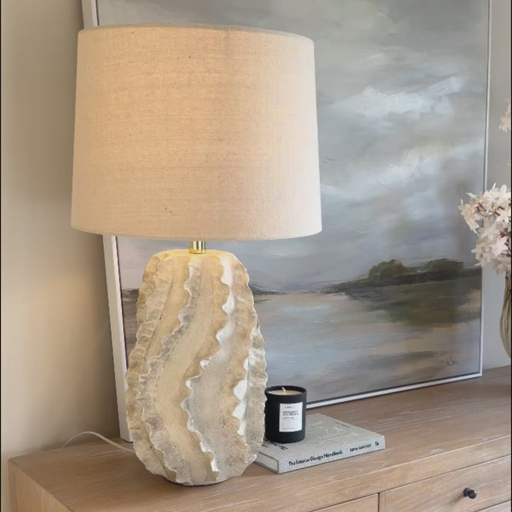 Introducing the Nolty Table Lamp featuring a mesmerizing design that will catch any eye. Crafted by hand with terracotta, the base boasts a stunning shape evocative of ocean corals, adorned with a serene natural hue. Complete with a pure white linen lampshade, this masterpiece exudes refinement and sophistication. Since each piece is handcrafted, slight variations in color and shape may occur, adding to its unique charm.