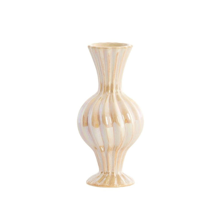 Savina Vase - Sand - The Savina Vase in sand features a fine ceramic build with a shiny, ribbed texture that adds subtle detail. Its neutral tone complements various décor styles, making it a versatile choice for displaying flowers or as a standalone accent piece. Durable and easy to clean,...