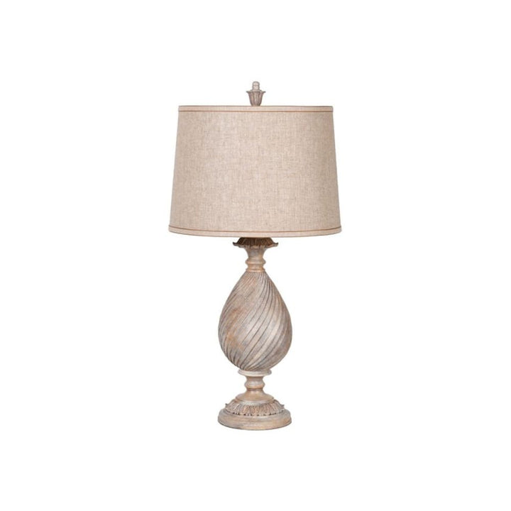 Sierra Table Lamp The Sierra Table Lamp features a sturdy base with curved, fluted detailing that adds subtle texture and style. Its linen shade provides a soft, diffused light, making it ideal for practical use in any room. This lamp combines functionality with understated design to complement various decor styles....