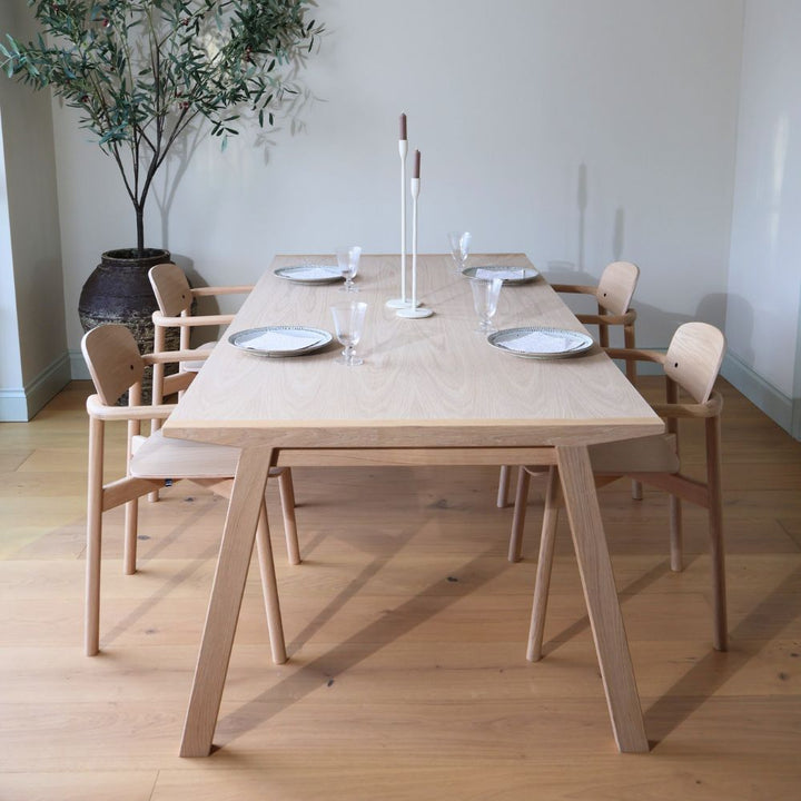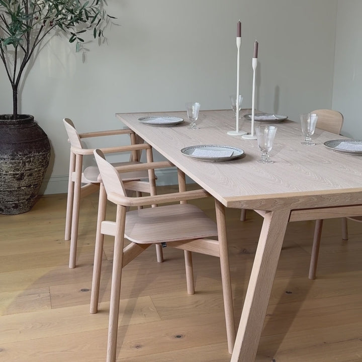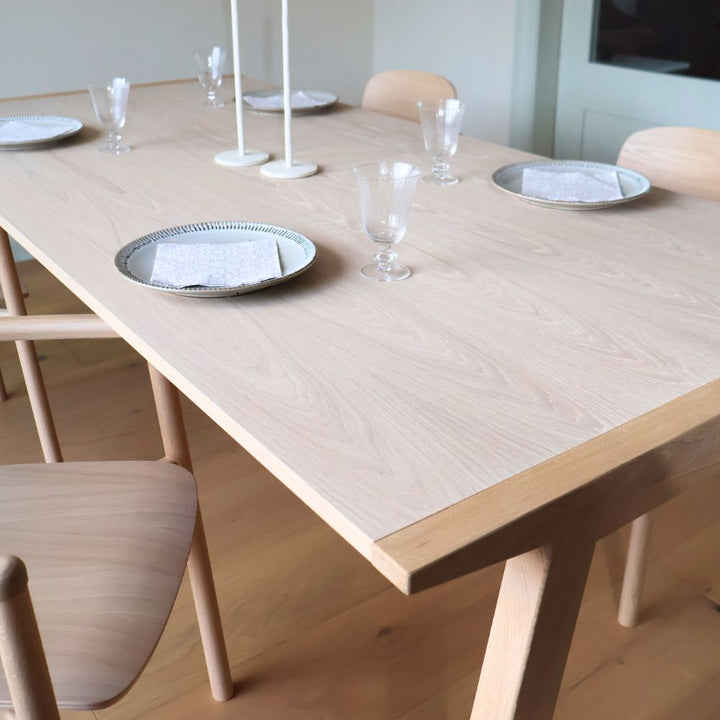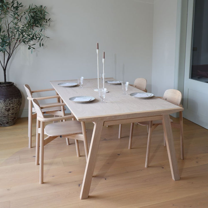 Skovby #140 Dining Table Ex-Display - Ex-display piece. - The unique gable design of the Skovby #140 Dining Table challenges and highlights the natural grain of the wood, showcasing both the construction and the material. With a fixed tabletop and dimensions of 100 x 174, easily seat 6 around this...