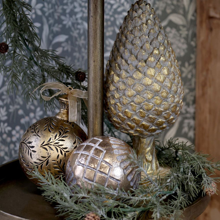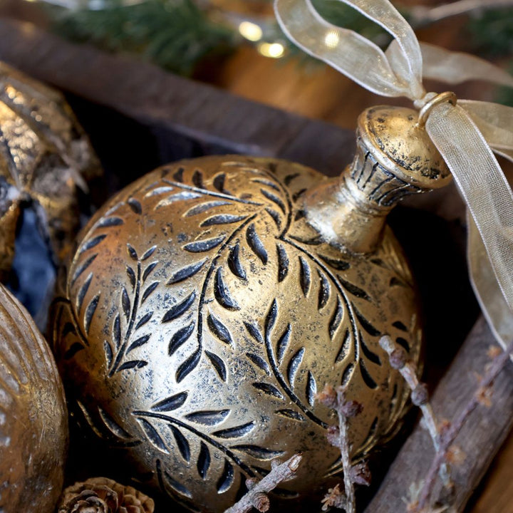 Sprig Accent Bauble - Elevate your décor with the Sprig Accent Bauble in antique brass finish. This finely crafted hanging ornament adds a timeless, elegant touch to any space. Its subtle sheen and classic design make it perfect for sophisticated seasonal displays or year-round embellishment. Designed to catch the eye,...
