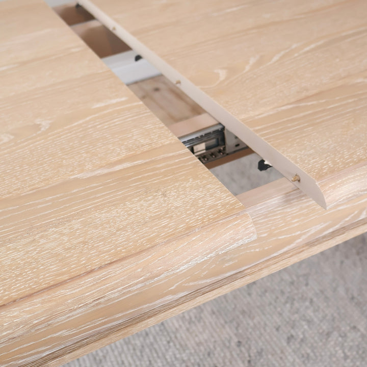 - The Story Extendable Dining Table combines classic design with practical versatility. Crafted with a natural wood veneer and traditional legs, it extends effortlessly with its 2 internal butterfly leaves, measuring 40cm each. This makes it ideal for both everyday meals and accommodating guests for special occasions. Its timeless style and natural finish bring warmth and elegance to any dining space.