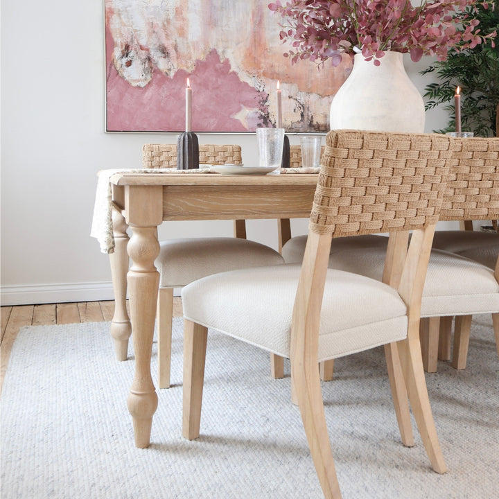 Light Oak Extending Dining Table - The Story Extendable Dining Table combines classic design with practical versatility. Crafted with a natural wood veneer and traditional legs, it extends effortlessly with its 2 internal butterfly leaves, measuring 40cm each. This makes it ideal for both everyday meals and accommodating guests for...
