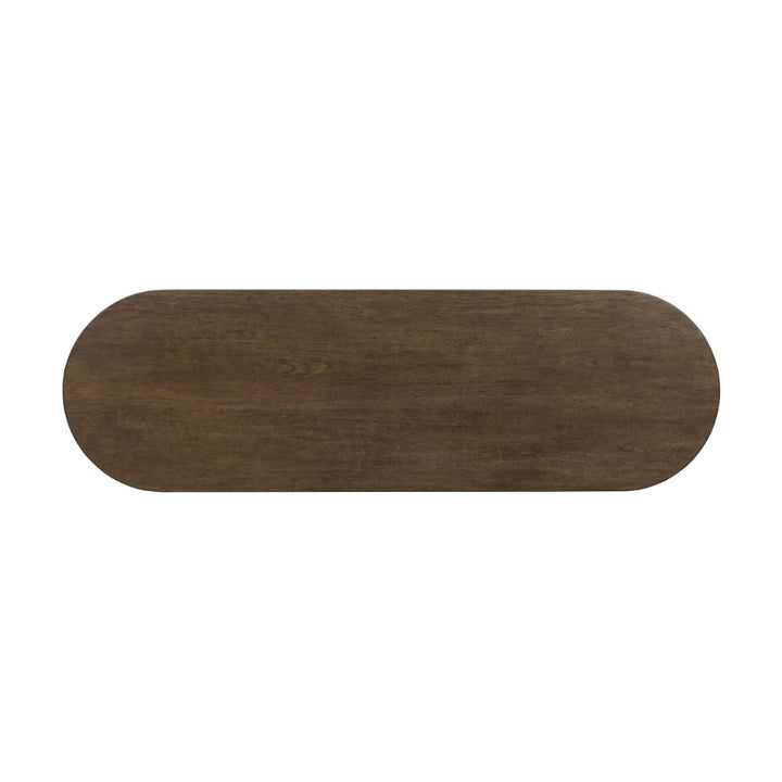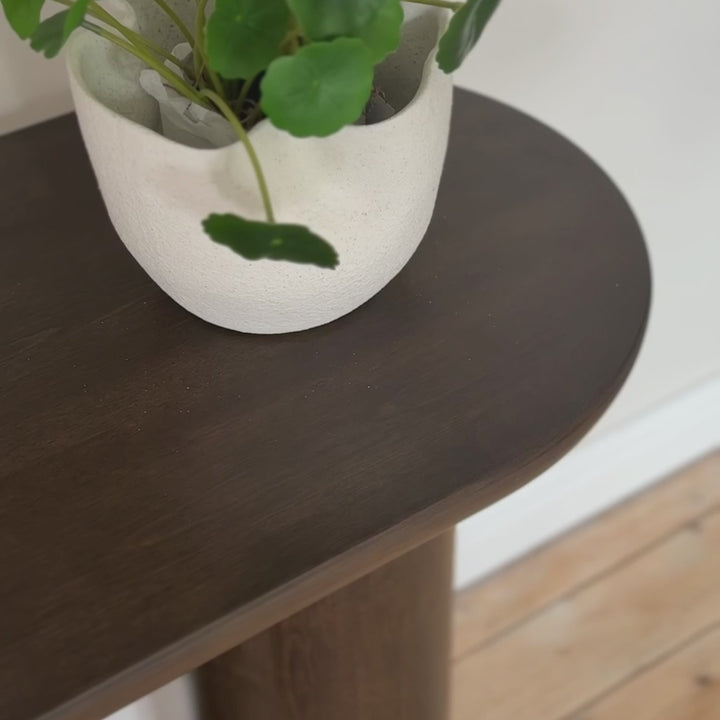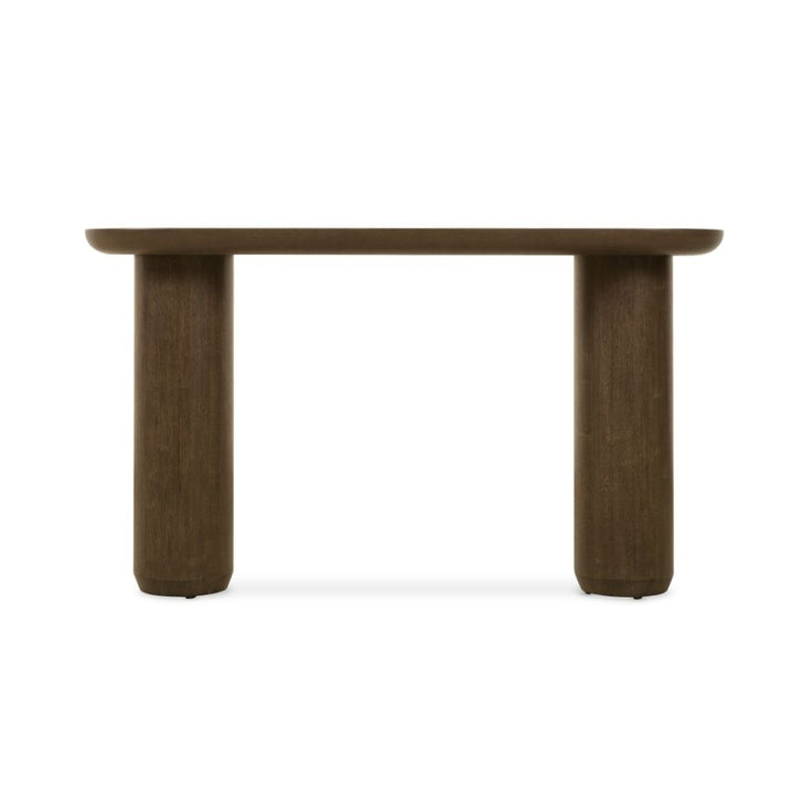 - The Tutor Console Table features a contemporary design with a dark brown wood veneer finish, offering a refined and elegant addition to any space. Its sleek profile and rich tones provide a distinctive home for your decor while delivering practical surface space for everyday essentials.