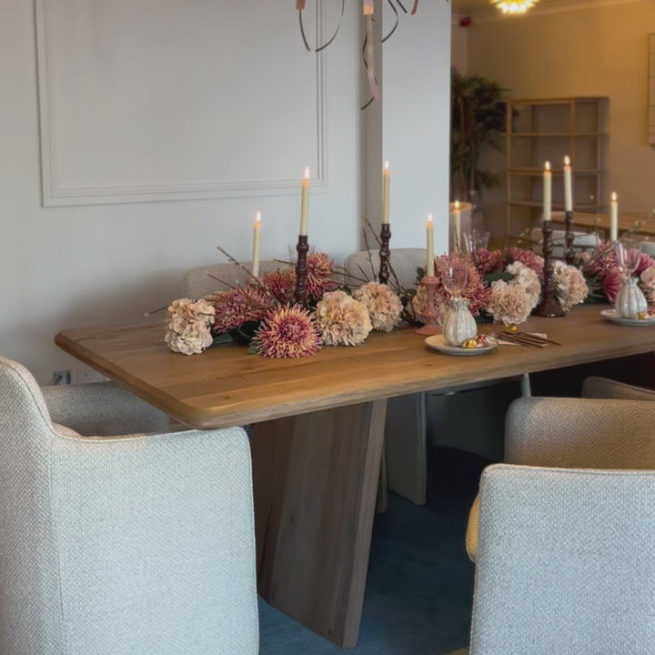 - The Valencia Dining Table by VICAL showcases authentic mango wood craftsmanship in rich brown tones. This substantial piece accommodates gatherings with generous surface area whilst maintaining elegant proportions. Hand-finished in natural mango wood, each table bears distinctive character through subtle variations in grain, tone, and artisanal marks—hallmarks of genuine wood furniture rather than flaws. The contemporary design bridges rustic warmth with modern functionality, making it equally suited to minimalist and eclectic interiors. Durable and built to endure, this is a statement piece that gains presence over time.