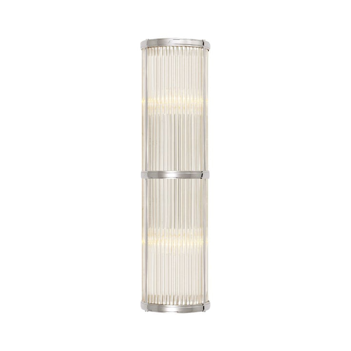 - Elevate your space with the Visual Comfort Allen Medium Linear Sconce, available in elegant Natural Brass or Polished Nickel finishes. Featuring sleek glass rods, this wall light combines refined materials with a linear design to cast a warm, inviting glow. Perfect for adding a sophisticated touch to hallways, living rooms, or bedrooms, it blends timeless style with modern craftsmanship.