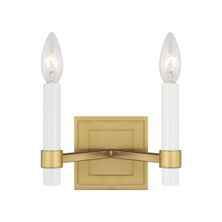 - The Marston Double Wall Sconce by Chapman & Myers showcases a timeless candlestick design in elegant burnished brass. This double wall light adds a sophisticated ambiance with its warm, inviting glow, perfect for enhancing both classic and modern interiors. Crafted for durability and style, it brings refined charm to any space.