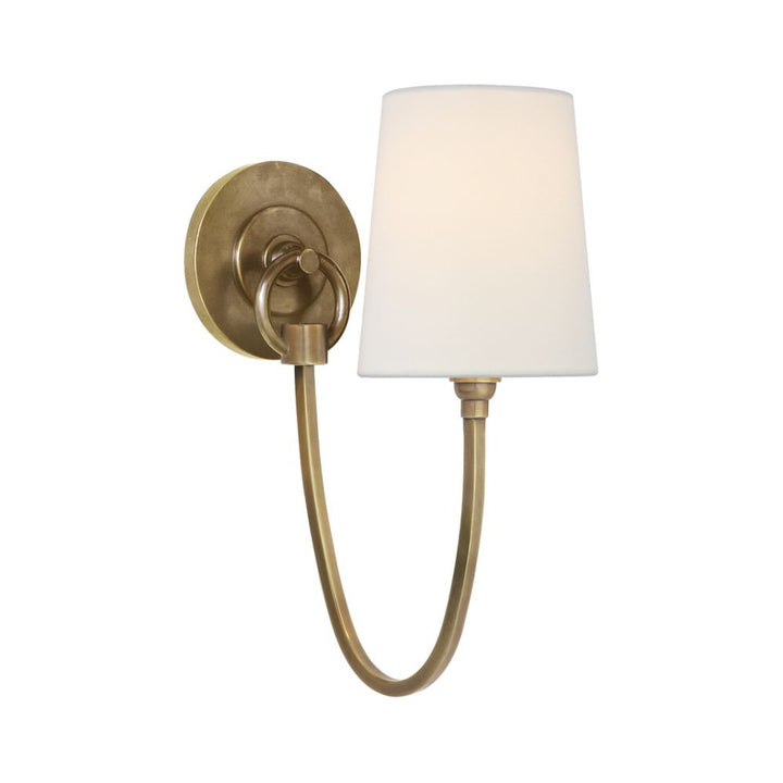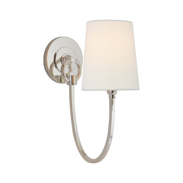 - The Reed Single Sconce designed by Thomas O'Brien combines elegant design with versatile finishes to complement any interior style. Its refined linen shade softly diffuses light, creating a warm and inviting ambiance. Perfect for adding a touch of sophistication to hallways, living rooms, or bedrooms, this sconce blends timeless appeal with modern functionality.